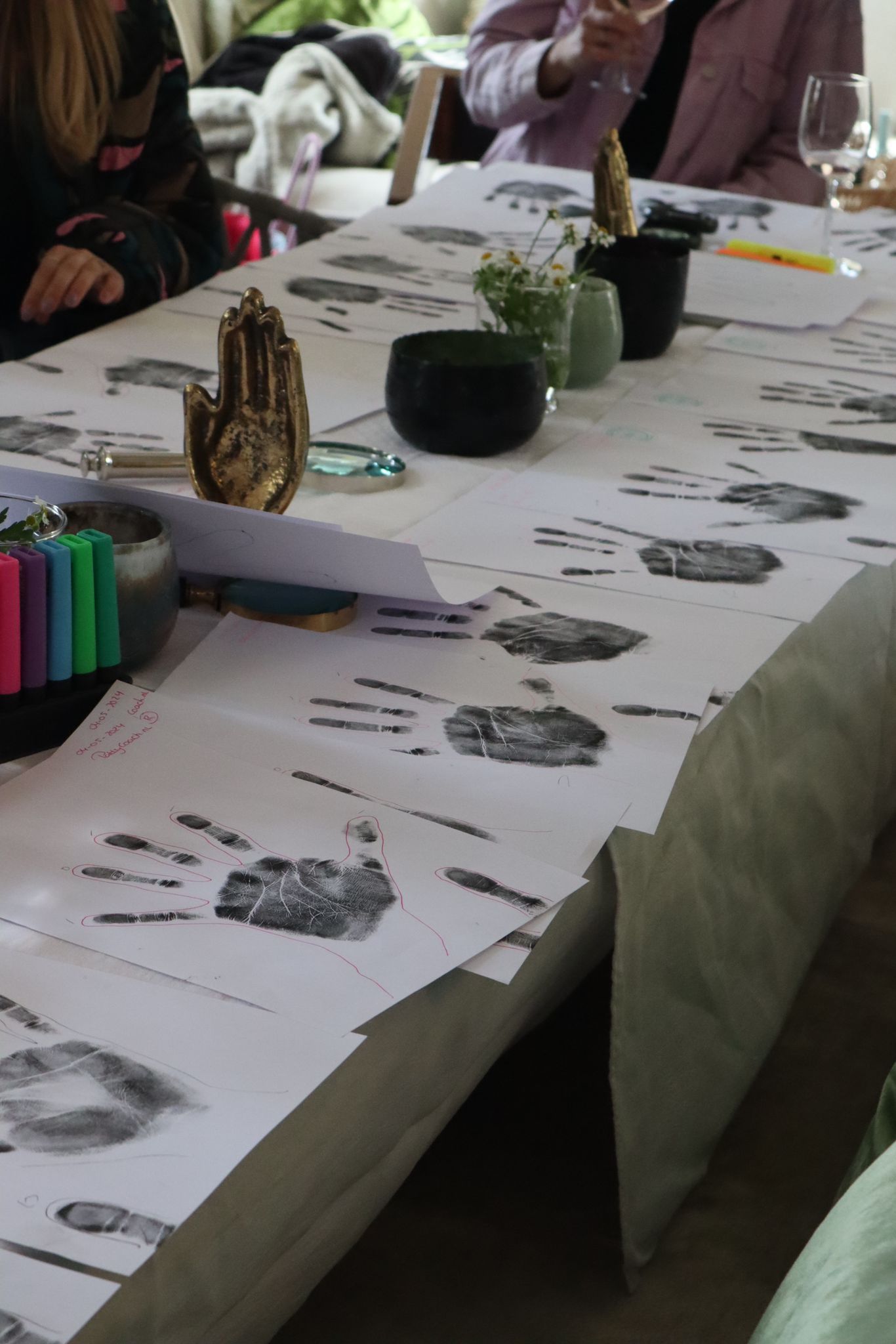 Het consult duurt (inclusief het maken van de handafdrukken) ca. 2 uur. Je kunt met je telefoon een geluidsopname maken. Na afloop krijg je de handafdrukken mee.
