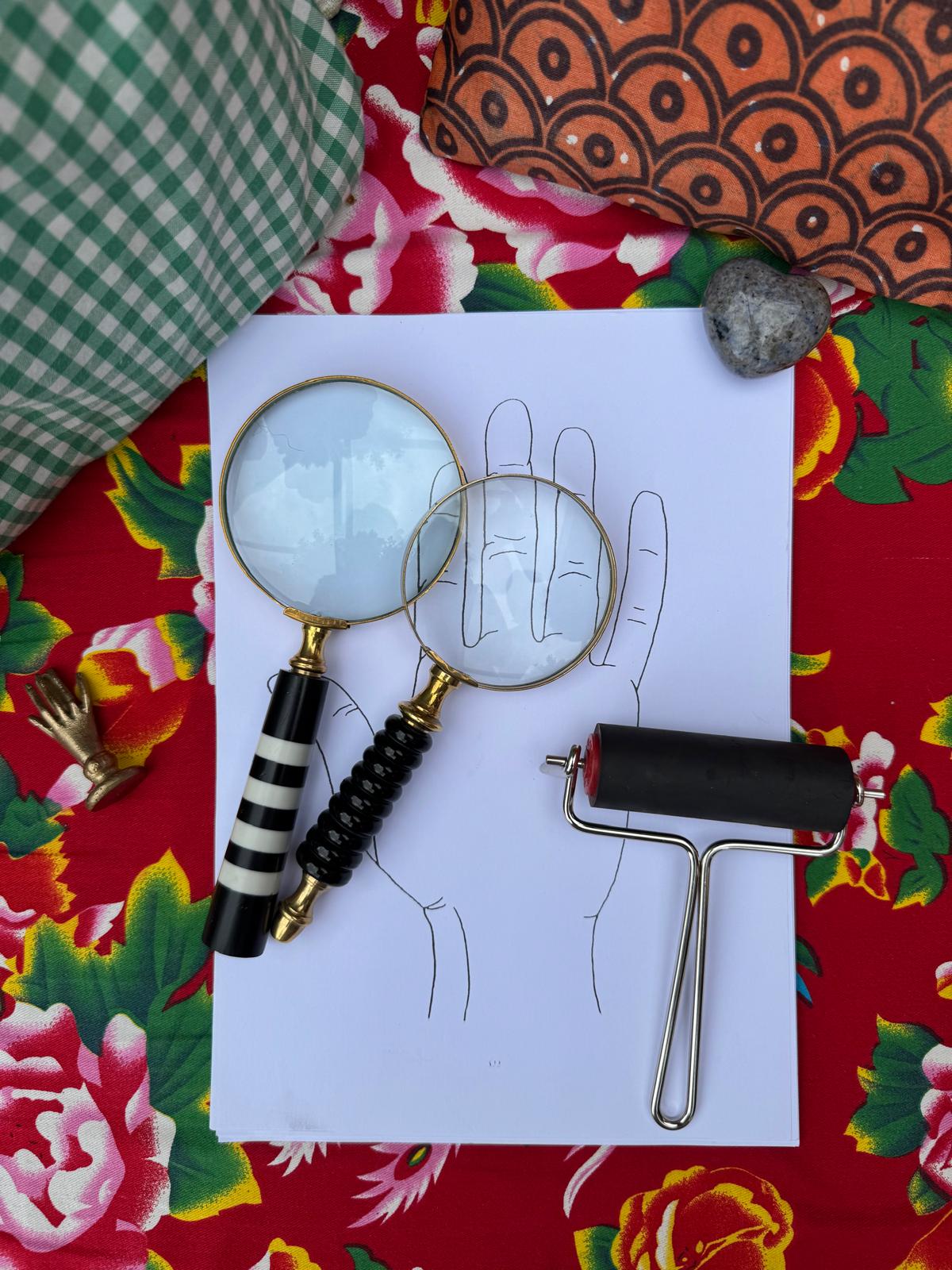 Allereerst maak ik afdrukken van je beide handen en noteer enkele algemene kenmerken. De afdrukken worden gemaakt op papier met afwasbare inkt. Unieke huidpatronen en de lijnen in je hand worden op deze manier goed zichtbaar.